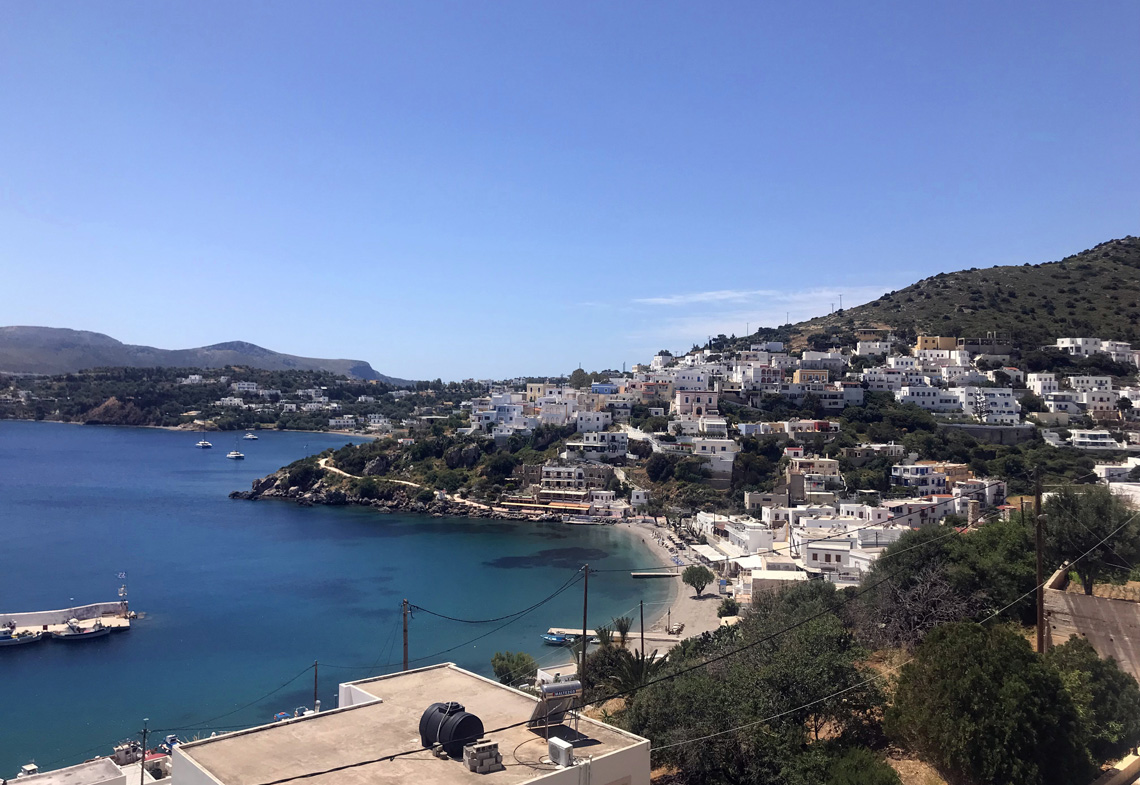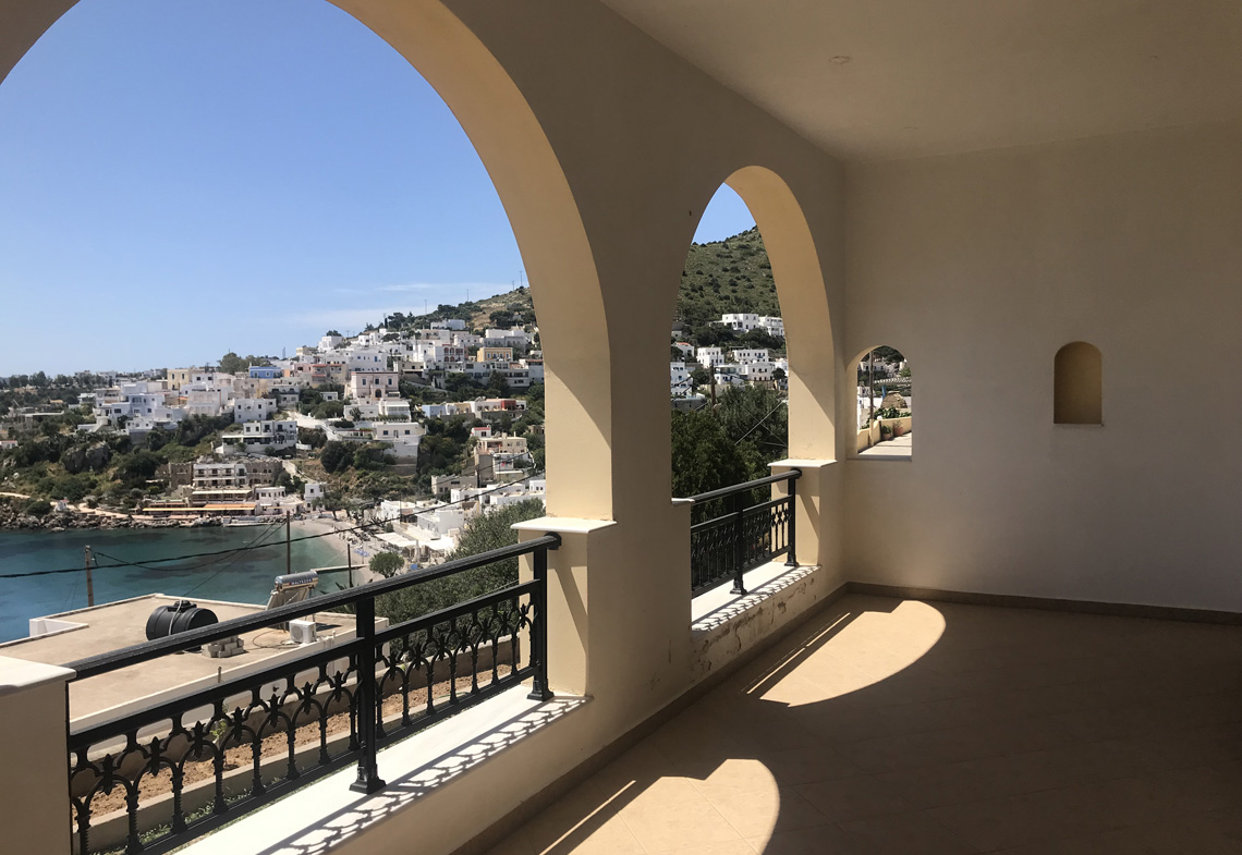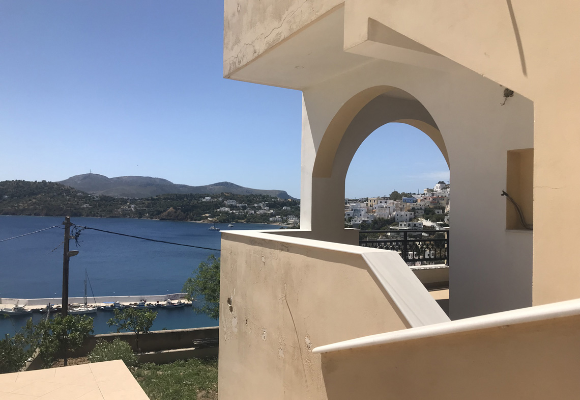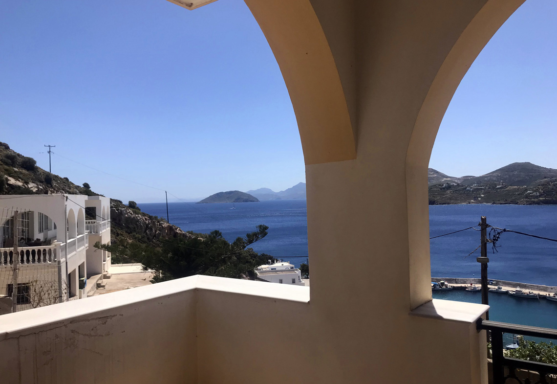 Un appartamento con due camere da letto con vista sulla baia di Panteli e sul mare aperto.