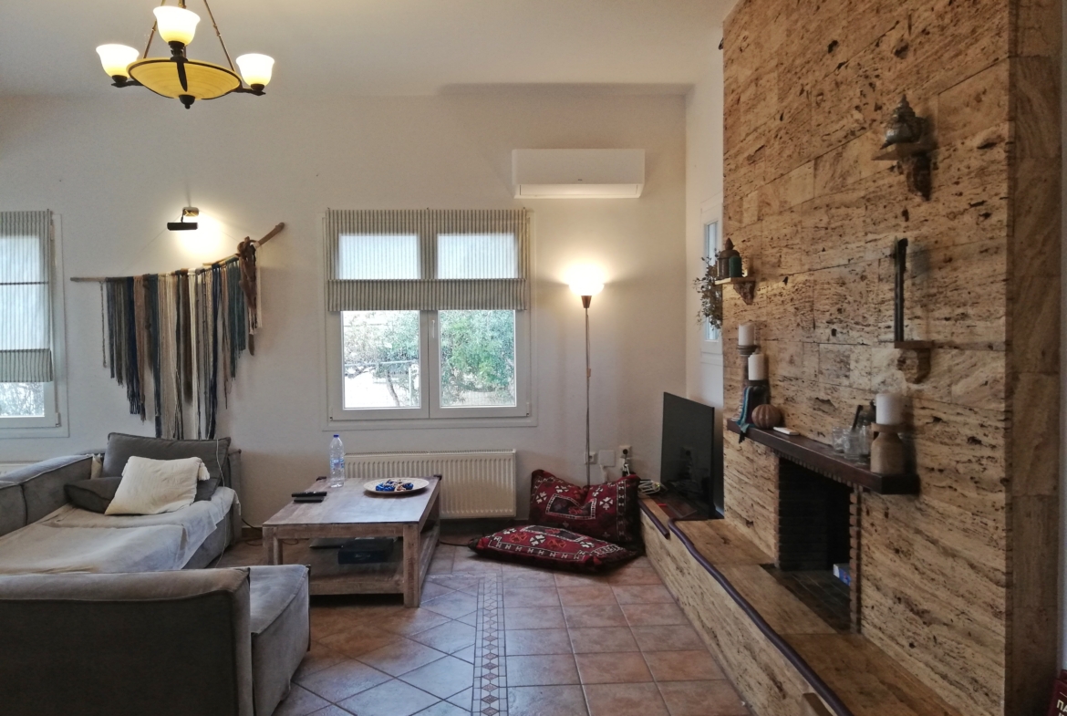 A 2 bedroom house covering 102 m² on a plot of land of 1,959 m². It lies only 15m from the sea with an unobstructed view of the picturesque Ayios Isidoros chapel and with beach access. The property includes verandas, large garden, spacious cellar and its own parking space.